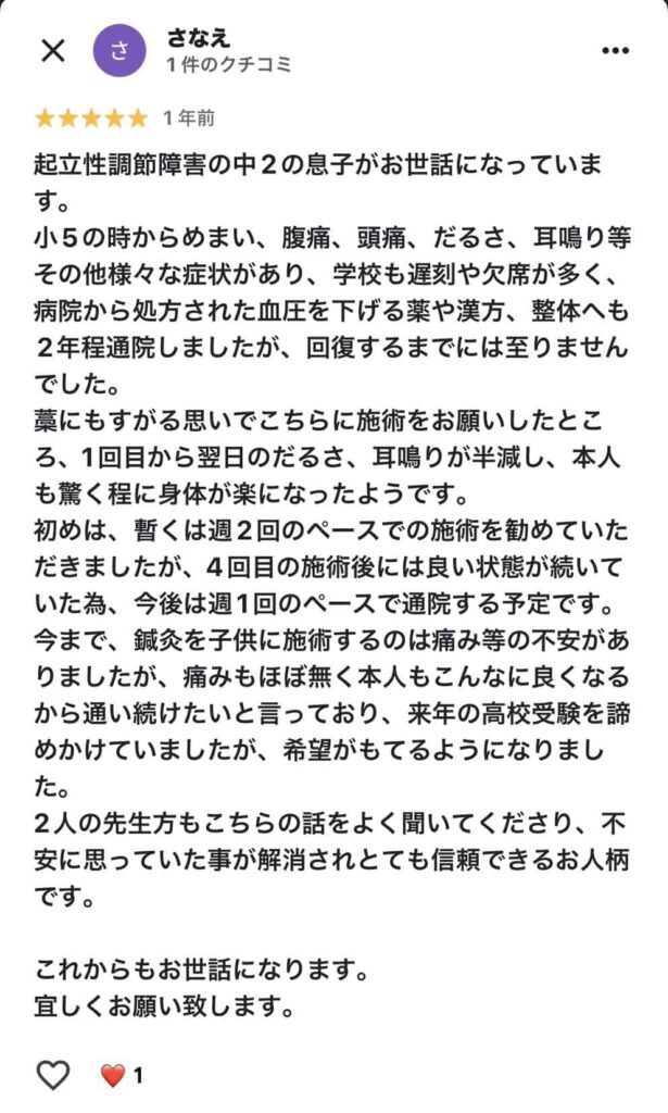 ※尚、当院では【起立性調節障害】を診ている鍼灸院です。